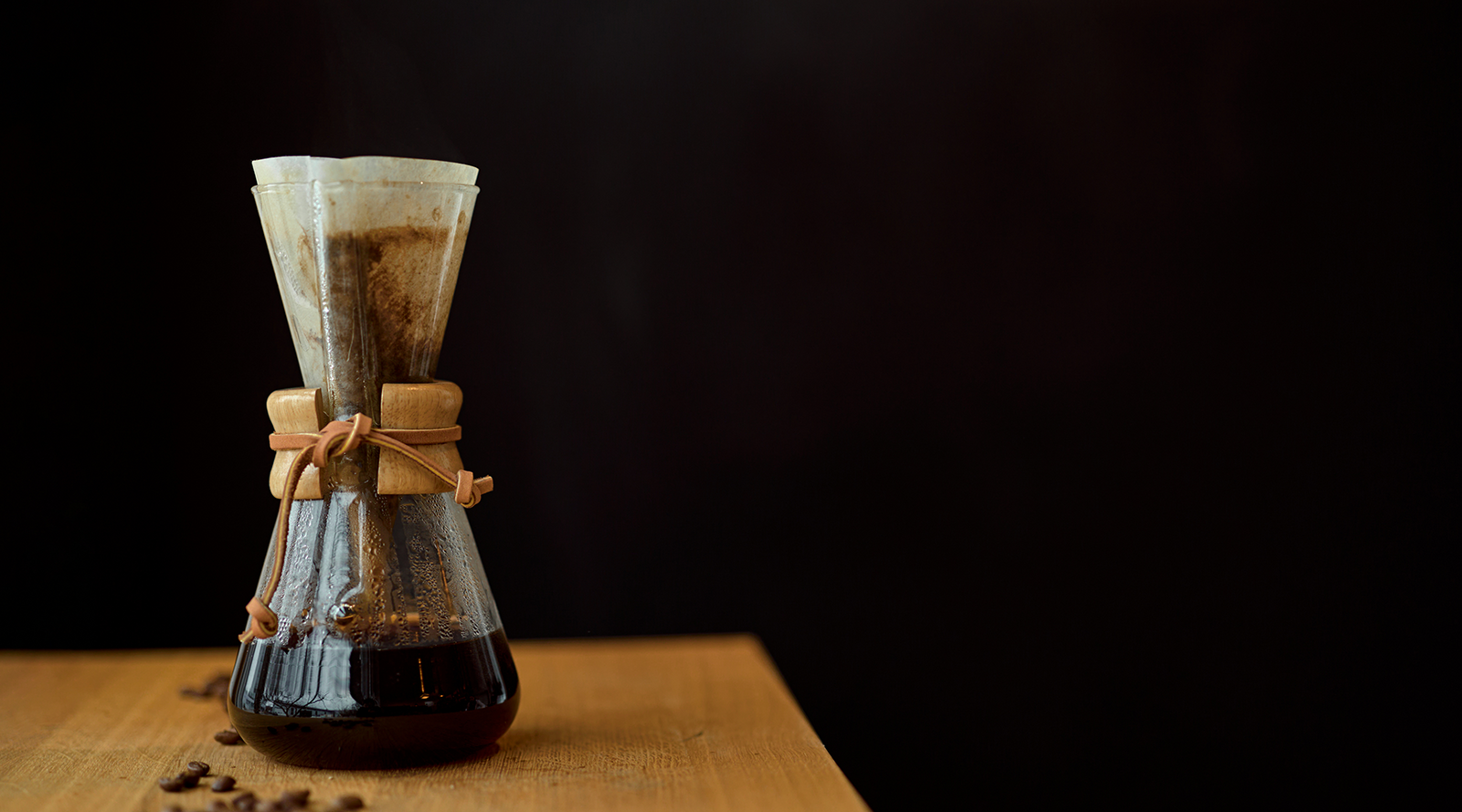 Auch bei der Zubereitung mit der Chemex wird der Kaffee durch einen Papierfilter gefiltert.